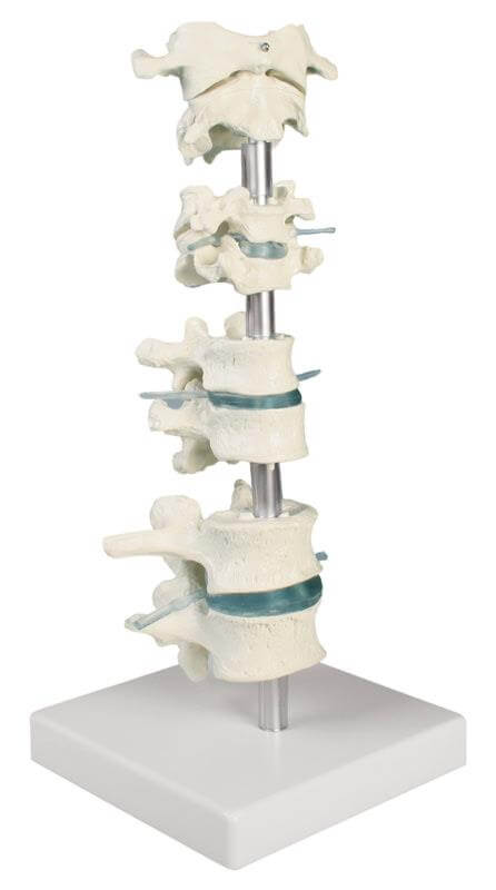 Dank der flexiblen Montage auf Gummi kann jeder Wirbel einzeln bewegt, entnommen und begutachtet werden. Die Bandscheiben sind realitätsnah dargestellt. Das Modell bietet eine übersichtliche Kombination aller Wirbelregionen – von Halswirbeln bis zu Lendenwirbeln – und unterstützt so ein umfassendes Verständnis der menschlichen Wirbelsäulenstruktur.