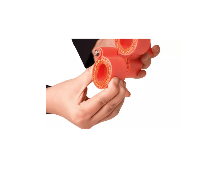 Durch die unterschiedliche Materialhärte wird die Veränderung der Gefäßelastizität im Verlauf der Arteriosklerose deutlich spürbar gemacht. Das Modell ist beweglich, jedoch nicht zerlegbar, und eignet sich besonders für praktische Demonstrationen in Schulung, Therapieaufklärung oder Präventionsveranstaltungen.