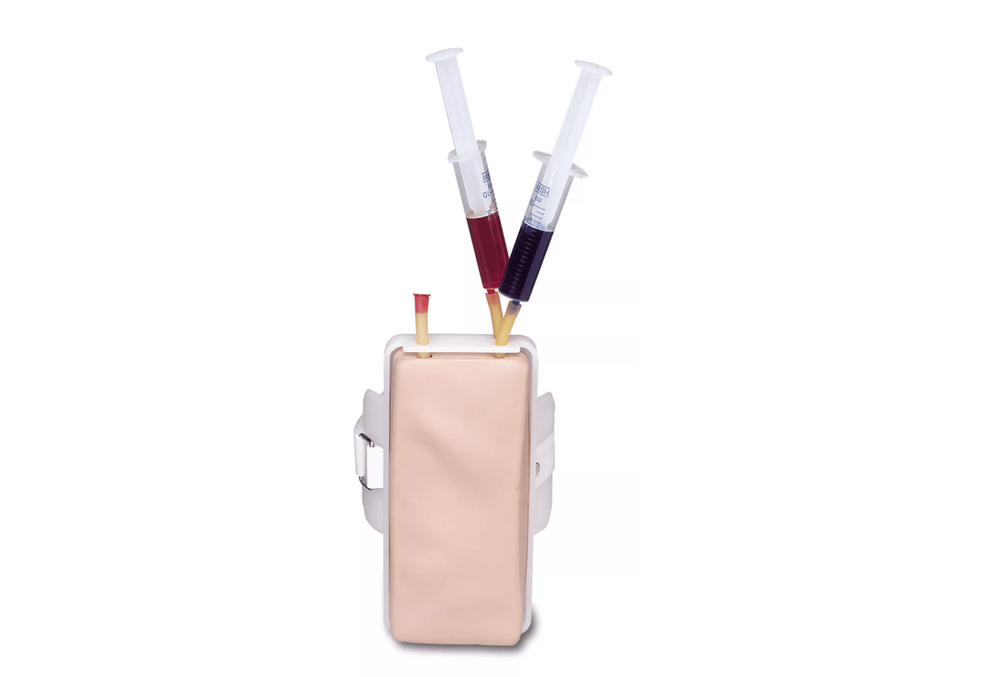 Dieser preiswerte Injektionstrainer ist die ideale Lösung für eine effiziente Klassenübung und ermöglicht es, mehrere Modelle für die gesamte Klasse zu erwerben. So wird vermieden, dass wertvolle Unterrichtszeit mit Warten auf freie Übungsmodelle verschwendet wird. Der Trainer lässt sich einfach mit einem Band am Arm befestigen und zeigt wichtigste Venen in der korrekten anatomischen Position.