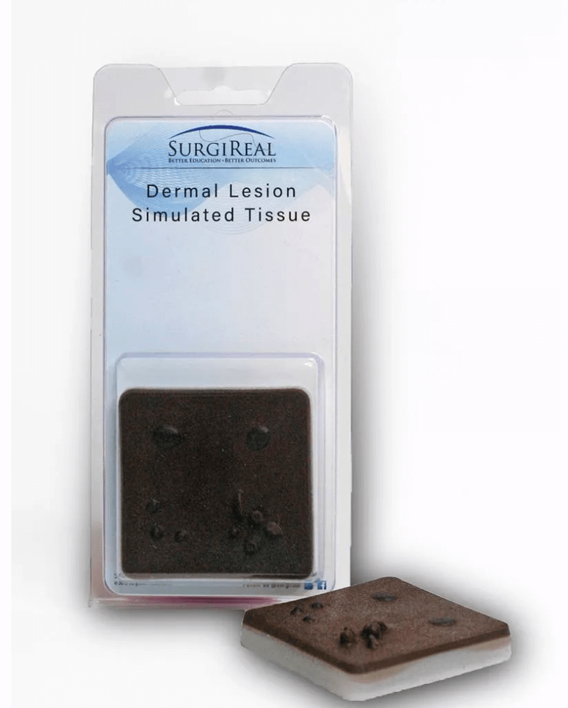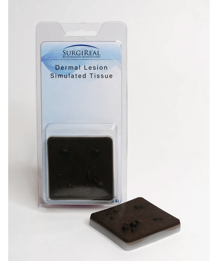 Das Simulierte Gewebe mit Hautläsionen, dunkelhäutig (Dermal Lesion Pad) ist ein hervorragendes Trainingswerkzeug für jedes dermatologische Lernprogramm. Es simuliert realistisch Muttermale und Hautanhängsel, die sich auf der Epidermis befinden, über dem subkutanen Fettgewebe und der Faszienschicht darunter. Dank des 3-Schichten-Modells können Auszubildende verschiedene Biopsieverfahren üben, einschließlich Stanzbiopsie, Shave-Biopsie, Exzisionsbiopsie, Knipsbiopsie, sowie Muttermalentfernung und Hautrekonstruktion. Diese realistische Nachbildung hilft dabei, präzise Biopsien und chirurgische Eingriffe an der Hautstruktur zu üben. Das dunkelhäutige Gewebe bietet eine zusätzliche Möglichkeit, spezifische Naht- und Biopsietechniken bei dunkelhäutigen Patienten zu erlernen.