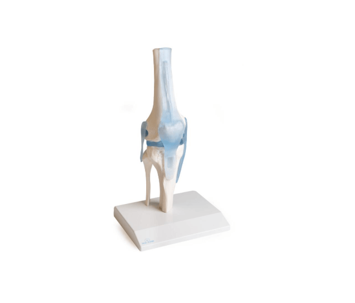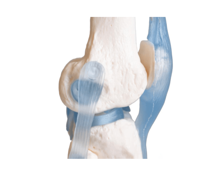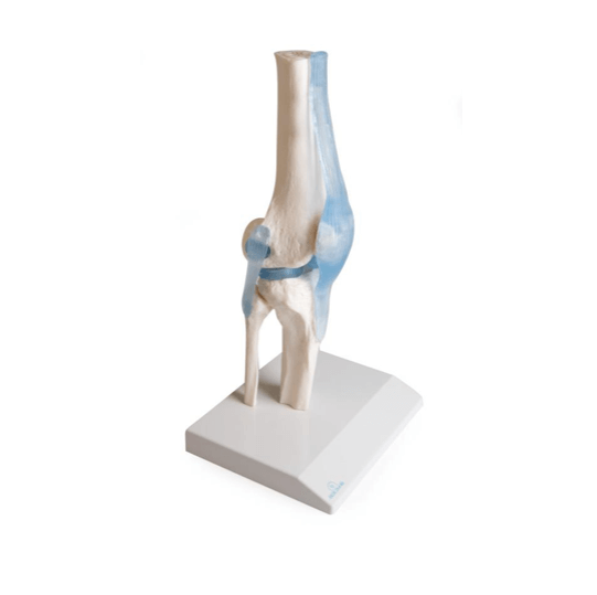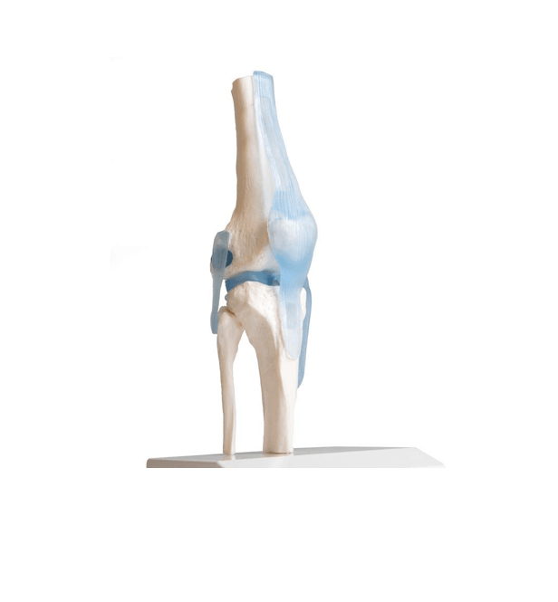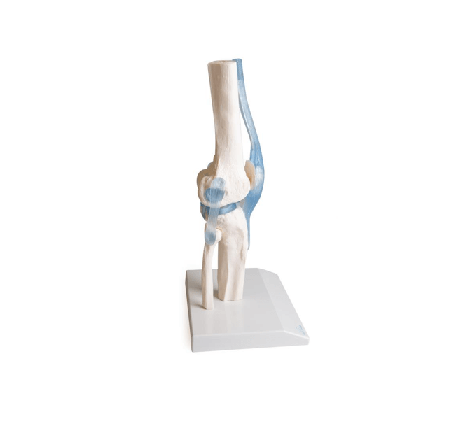 Dieses realistische Kniegelenkmodell basiert auf einem Naturabguss des menschlichen Kniegelenks und bietet eine detaillierte Darstellung aller relevanten anatomischen Strukturen. Es enthält die Stümpfe von Ober- und Unterschenkel, die Ansatzsehne des M. rectus femoris, die Kniescheibe mit Patellarsehne, Seitenbänder, Menisken und Kreuzbänder – alle gefertigt aus elastischem Kunststoff für hohe Flexibilität und Langlebigkeit.
